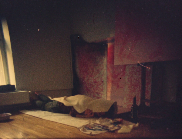 Duration: 4’15’’ (16mm film, digital scan)pleasing to the eye is a self-reflective meditation on the act of creation and destruction in art-making. Shot on 16mm film, it captures an artist immersed in the memories of painting—its making, erasure, and quiet afterimage. The film unfolds as a love letter to painting and a search for peace within the cycle of creation, loss, and renewal.